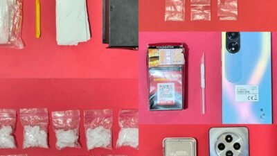 Dan ketika dilakukan pemeriksaan, ditemukan 7 bungkus plastik klip berisi serbuk kristal warna bening diduga narkotika golongan I jenis sabu-sabu siap edar.