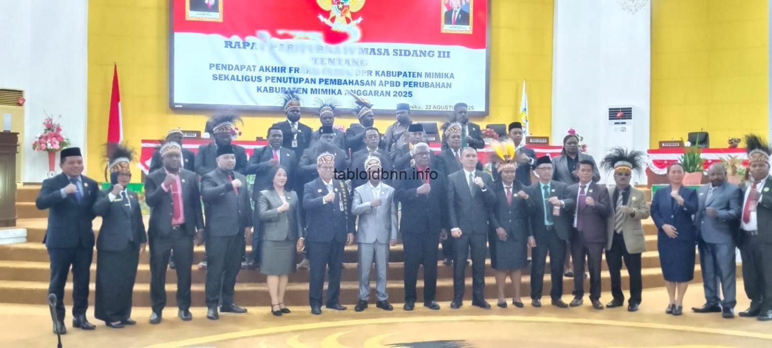 Dewan Perwakilan Rakyat Kabupaten (DPRK) Mimika secara resmi menyetujui Rancangan Peraturan Daerah (Ranperda) tentang Anggaran Pendapatan dan Belanja Daerah Perubahan (APBD-P) Tahun Anggaran 2025 dengan nilai sebesar Rp6,8 triliun.