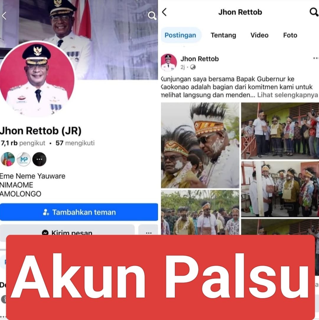 Tabloidbnn.info. Timika. Bupati Mimika, Johannes Rettob mengeluarkan imbauan kepada seluruh masyarakat untuk berhati-hati terhadap keberadaan akun Facebook palsu yang mengatasnamakan dirinya.