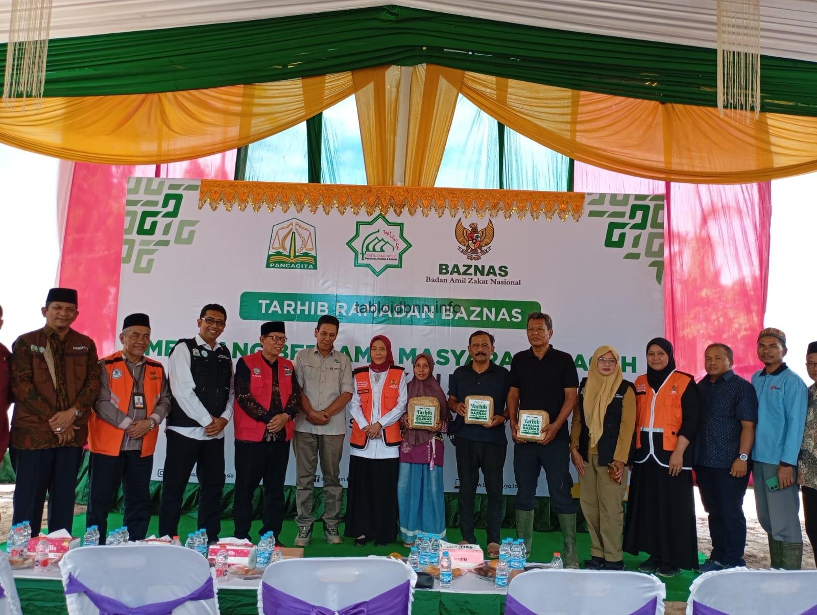 Dalam agenda Tarhib Ramadhan BAZNAS 1447 H-2026M yang bertemakan Meugang Bersama Masyarakat Aceh, Zakat Menguatkan Indonesia bertempat di halaman mesjid Nur Hasanah Kampung Kebun Tanah Terban Kecamatan Karang Baru, Aceh Tamiang, Senin, 16 Februari 2026.
