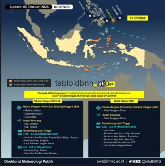Kondisi dinamika atmosfer pada Kamis (5/2/2026), pukul 07.00 WIB
