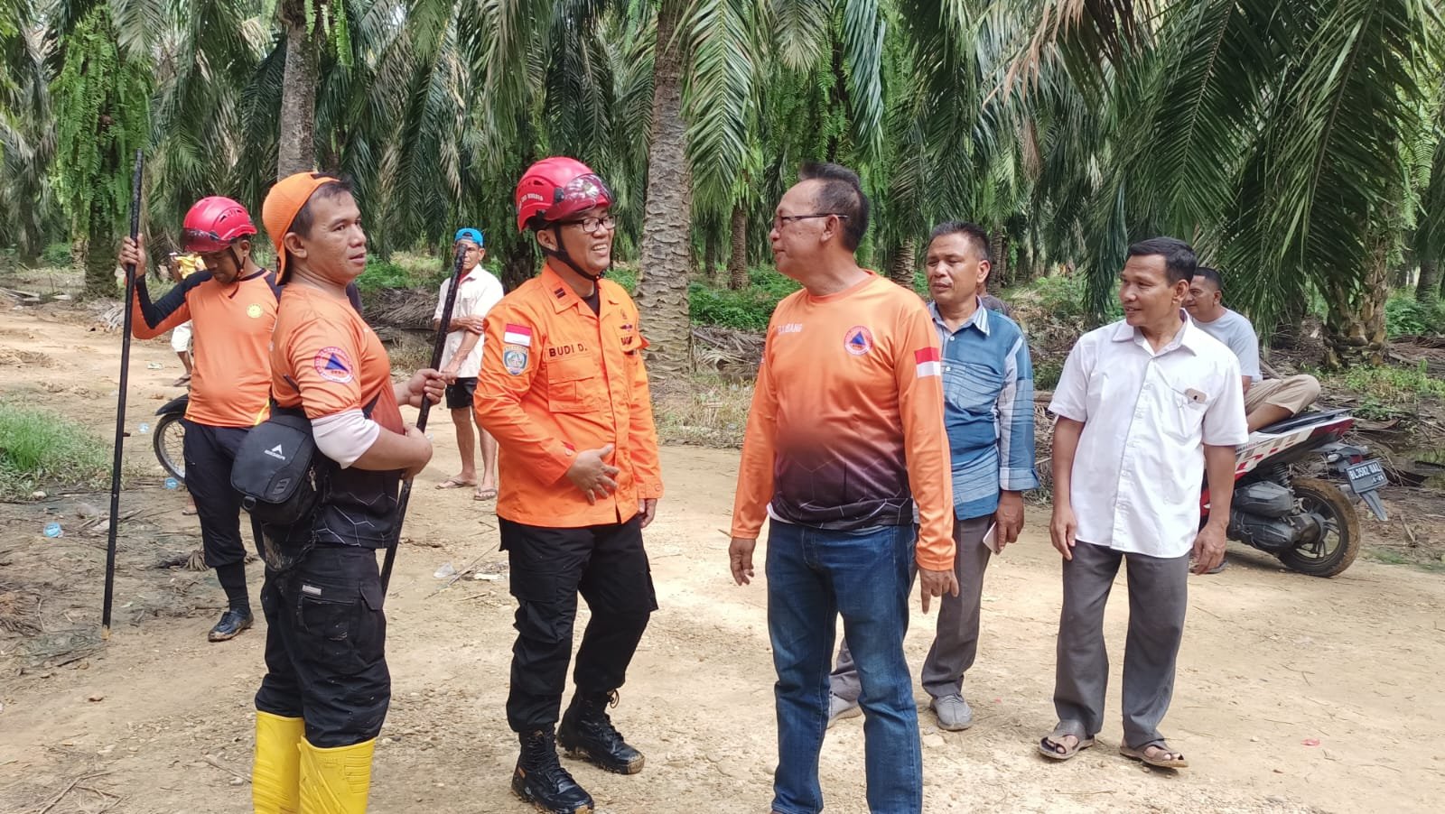 Terlihat sejumlah personel yang tergabung dalam tim, BPBD, SAR, Pemadam Kebakaran dan Penyelamatan, TNI-Polri serta warga setempat terus melakukan pencarian dengan menyisir lokasi area perkebunan kelapa sawit milik PT.Betami.