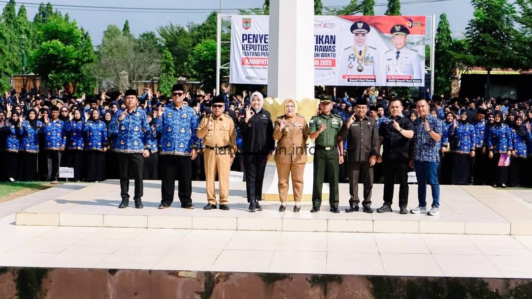 Tabloidbnn.info | Musi Rawas – Bupati Musi Rawas, Hj. Ratna Machmud, secara resmi melantik 3.183 Pegawai Pemerintah dengan Perjanjian Kerja (PPPK) Paruh Waktu di lingkungan Pemerintah Kabupaten Musi Rawas. Prosesi pelantikan dan penyerahan Keputusan Bupati tersebut berlangsung khidmat di halaman Kantor Bupati Musi Rawas, Selasa (23/12/2025).