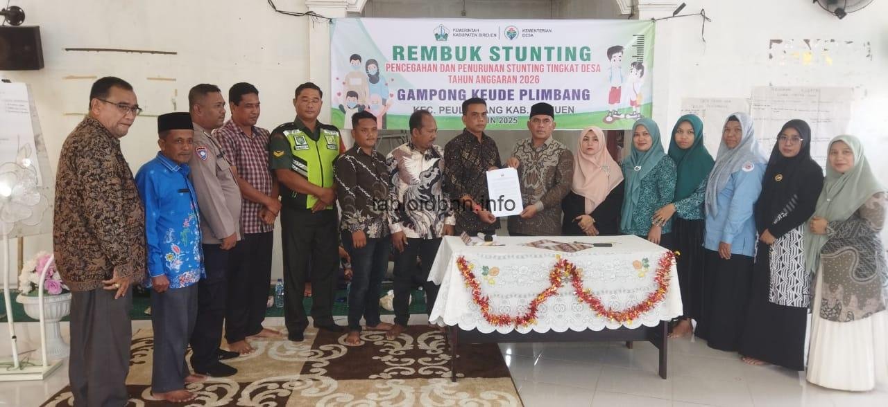 Tabloidbnn.info, Peulimbang – Pemerintah Kecamatan Peulimbang, Kabupaten Bireuen, melaksanakan kegiatan Rembuk Stunting Tingkat Desa Tahun Anggaran 2026 di Meunasah Gampong Keude Peulimbang pada Kamis, 13 November 2025. Acara ini merupakan langkah konkret dalam upaya pencegahan dan penurunan stunting yang menjadi prioritas nasional.