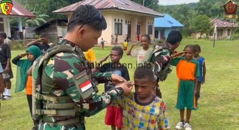 Satgas Pamtas RI – PNG Pos Yembun Ajarkan PBB (Peraturan Baris Berbaris) di SD Inpres Metnayam