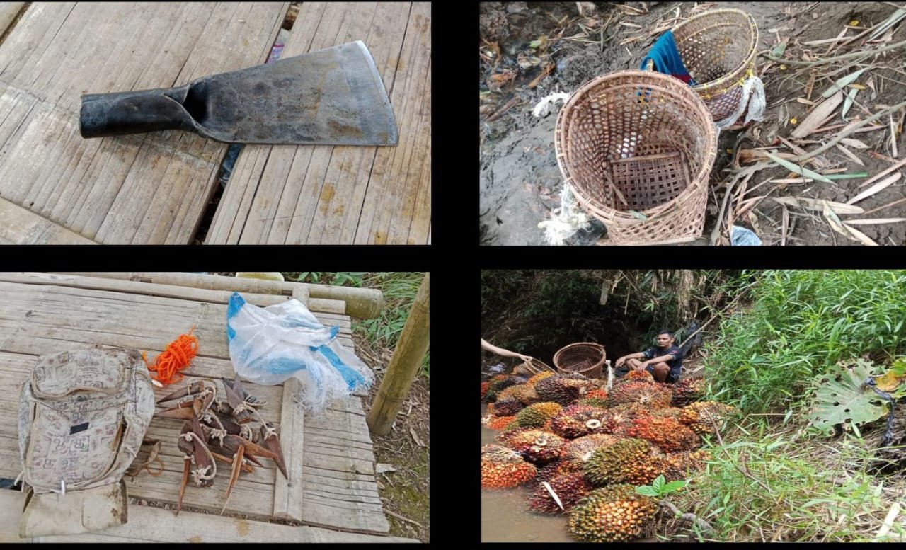 “Selain tersangka, personel berhasil menyita BB diantaranya, 119 janjang buah kelapa sawit, 137 potongan bambu kecil yang telah ditajamkan, empat batang bambu, satu buah dodos dan dua buah keranjang,” tuturnya.