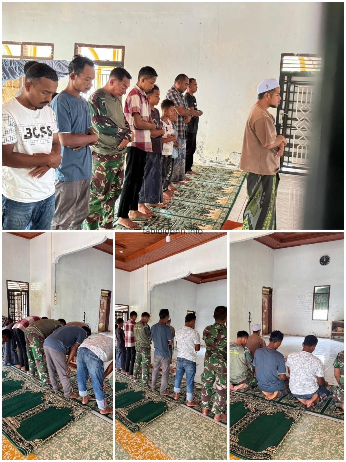 Kegiatan ibadah tersebut dilaksanakan dengan penuh kekhusyukan, menjadi momen jeda dari kerja fisik yang sejak pagi difokuskan pada pembangunan sarana dan prasarana desa. Tanpa sekat antara prajurit dan warga, mereka berdiri dalam satu saf, menyatukan niat, doa, dan harapan demi keberkahan setiap langkah pengabdian.