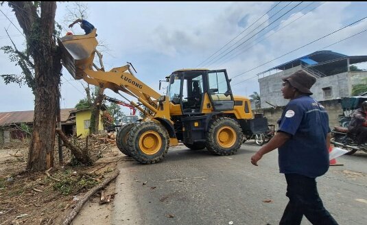 Dinilai Berpotensi Bahaya, DLH Aceh Tamiang Tebang Pohon di Jalan Nasional