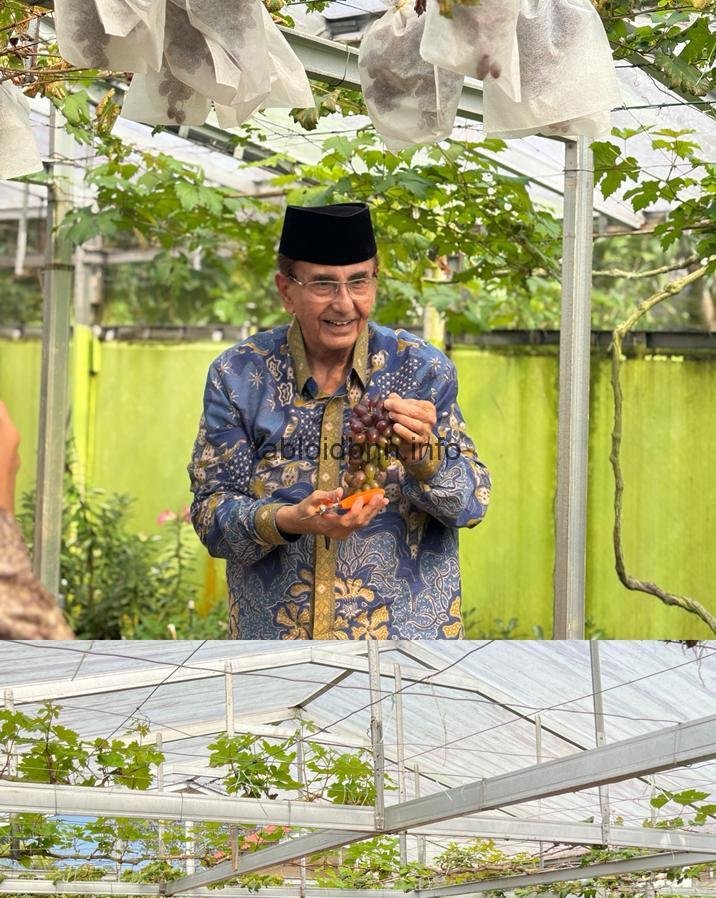 Saat pemetikan buah anggur, Anggota DPD RI Ismeth Abdullah menyampaikan apresiasi kepada keluarga Izam pemilik kebun anggur yang luas dan tertata rapi.