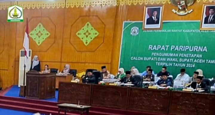 Tabloidbnn.info | Aceh Tamiang – Dewan Perwakilan Rakyat Kabupaten (DPRK) Aceh Tamiang menggelar sidang paripurna penetapan Bupati dan Wakil Bupati (Wabup) terpilih pada pemilihan kepala daerah (Pilkada) serentak, 27 November 2024, pasangan Drs. Armia Fahmi, M.H – Ismail, S.E.i bertempat di Ruang Sidang Utama, Gedung DPRK Kabupaten setempat, Senin (20/01/25).