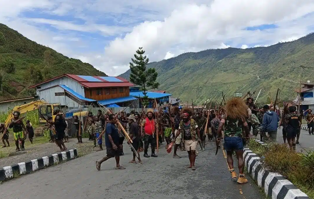 Aksi saling serang dua kelompok warga di Kabupaten Puncak Jaya, Rabu (26/11).