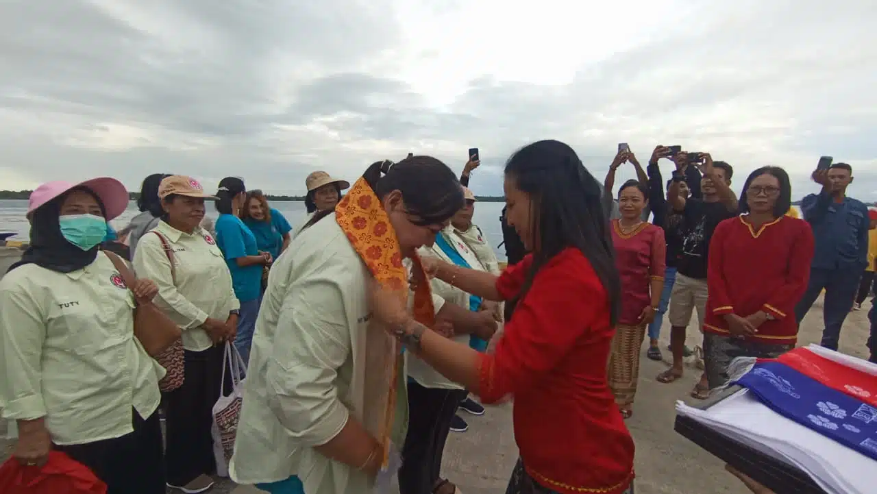 Ketua TP-PKK dan Dekranasda Mimika bersama rombongan saat disambut di Pelabuhan Tual.
