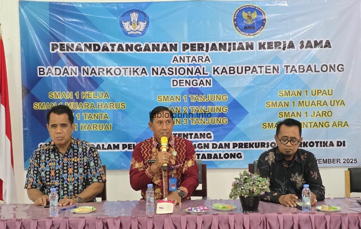Tabloidbnn.info – Tabalong, Kalsel – Sebagai bentuk komitmen Badan Narkotika Nasional Kabupaten (BNNK) Tabalong terus memperkuat langkah pencegahan narkoba dikalangan pelajar pada Selasa, (20/11/2025), melakukan penandatanganan Perjanjian Kerja Sama (PKS) dengan sejumlah Sekolah Menengah Atas (SMA) di Kabupaten Tabalong.