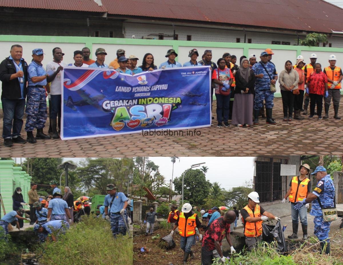 Tabloidbnn.info Tinika. Dalam rangka menyukseskan Gerakan Nasional Indonesia ASRI (Aman, Sehat, Resik, dan Indah), personel Lanud Yohanis Kapiyau Timika mengikuti kegiatan Jumat Bersih di Kampung Nawaripi, Mimika, Papua Tengah. Jum’at (27/2/2026).