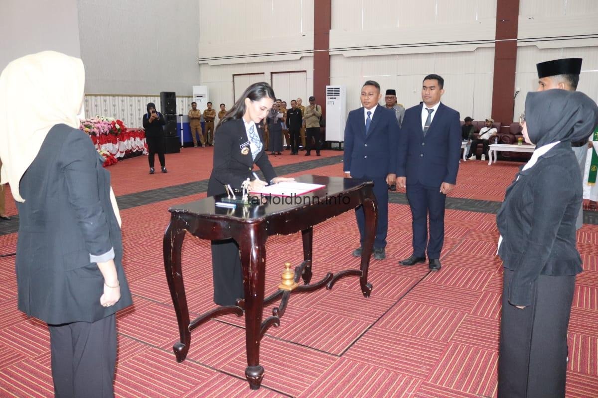 Penandatanganan Berita Acara oleh Gubernur Sherly dan Saksi menjadi rangkaian penting sekaligus menjadi awal keabsahan para Pejabat dalam menjalani Tugas di tempat barunya.