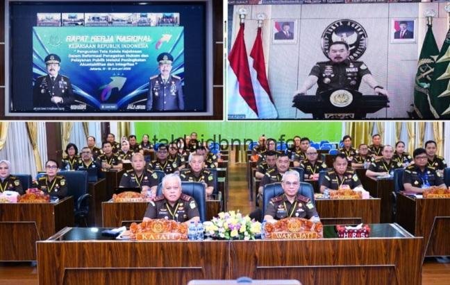 Tabloidbnn.info.Jakarta, – Jaksa Agung Republik Indonesia Prof.Dr.ST.Burhanudin membuka secara resmi pelaksanaan Rapat kerja nasional (Rakernas) Kejaksaan Republik Indonesia tahun 2026 yang dilaksanakan di Kejaksaan Agung Republik Indonesia Jakarta dengan mengusung tema “Penguatan Tata Kelola Kejaksaan Dalam Reformasi Penegakan Hukum Dan Pelayanan Publik Melalui Peningkatan Akuntabilitas Dan Integritas”.(13/1/2026)
