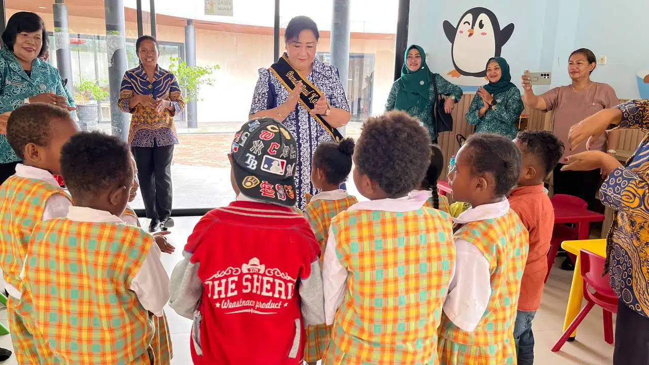 Tabloidbnn.info.Timika, – Ketua TP-PKK dan Bunda PAUD Kabupaten Mimika, Ny. Suzy Rettob, melakukan kunjungan perdananya ke PAUD Amoro sebagai bentuk perhatian terhadap pendidikan anak usia dini di Kabupaten Mimika.