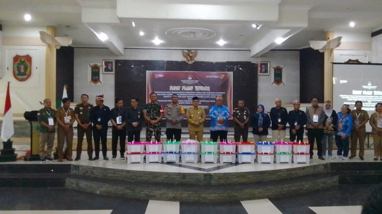 Acara pembukaan Rapat Pleno Terbuka Rekapitulasi Hasil Penghitungan Perolehan Suara Pada Pemilihan Gubernur dan Wakil Gubernur Kalimantan Tengah, Bupati dan Wakil Bupati Barito Timur Tahun 2024 dihadiri Pj. Bupati Barito Timur, Kapolres Barito Timur, Kepala Kejaksaan Negeri, Perwira Penghubung 1012 Buntok dan undangan lainnya.
