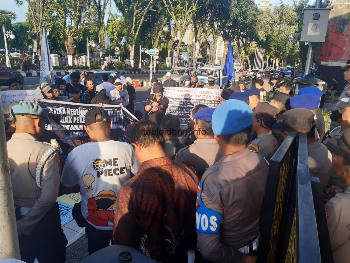 KSPSI Kaltim menggelar aksi demonstrasi menuntut DPRD Balikpapan menertibkan perusahaan subkontraktor RDMP yang dianggap tidak menjalankan hasil kesepakatan RDP.