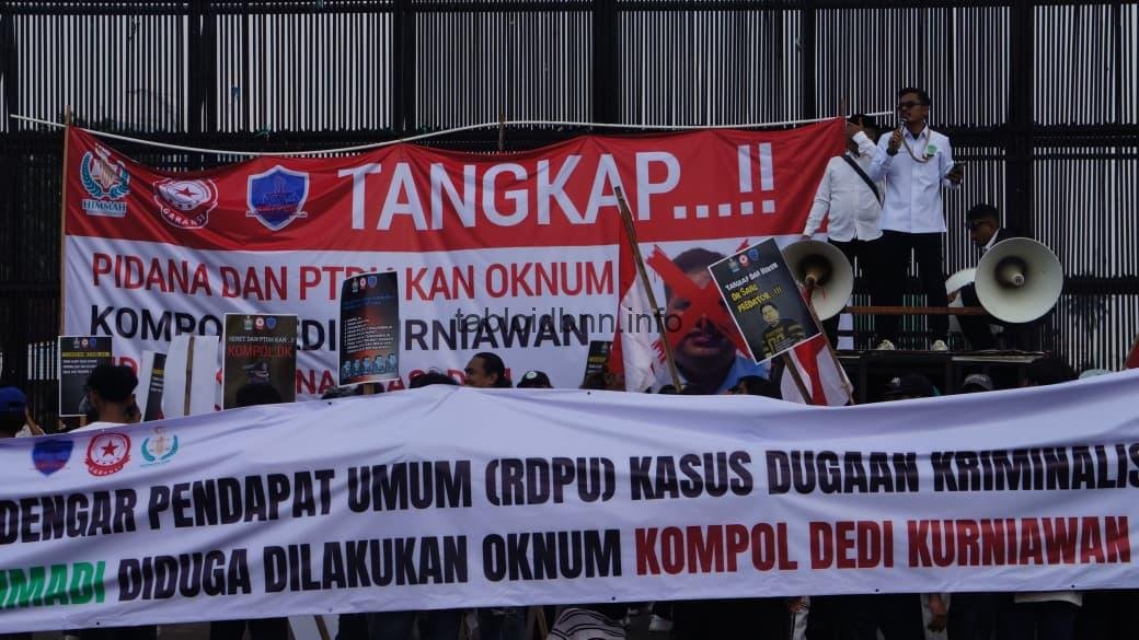 Massa aksi mendesak Komisi III DPR RI untuk segera mengagendakan Rapat Dengar Pendapat Umum (RDPU) guna menggali informasi secara menyeluruh dari berbagai pihak terkait.