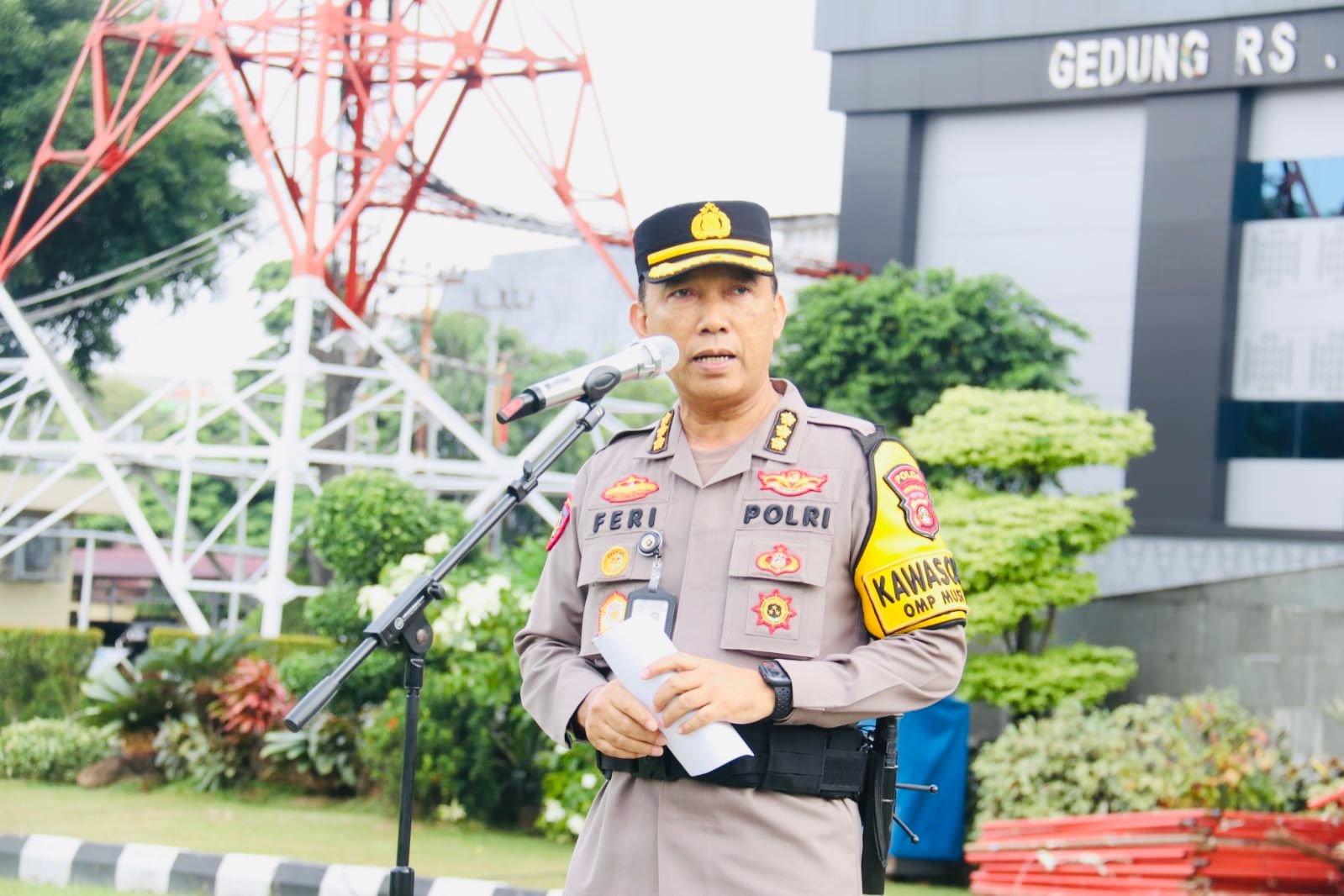 Irwasda didampingi Direktur Lalu Lintas Kombes Pol M Pratama Adhyasastra, Kabid Propam Kombes Pol Dadan Wahyudi, serta Kapolres/tabes jajaran, dalam apel di lapangan upacara Mapolda Sumsel, Senin pagi (20/1/2025).