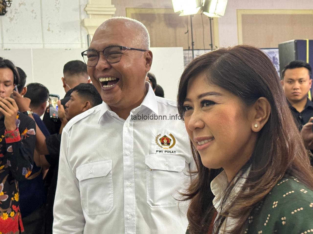 Menkomdigi, Meutya Hafid bersama Ketua Umum PWI Pusat, Akhmad Munir pada acara pengukuhan Pengurus PWI Pusat periode 2025-2030 di Gedung Monumen Pers Nasional di Solo, Sabtu, 4 Oktober 2025. (Dok PWI Aceh)