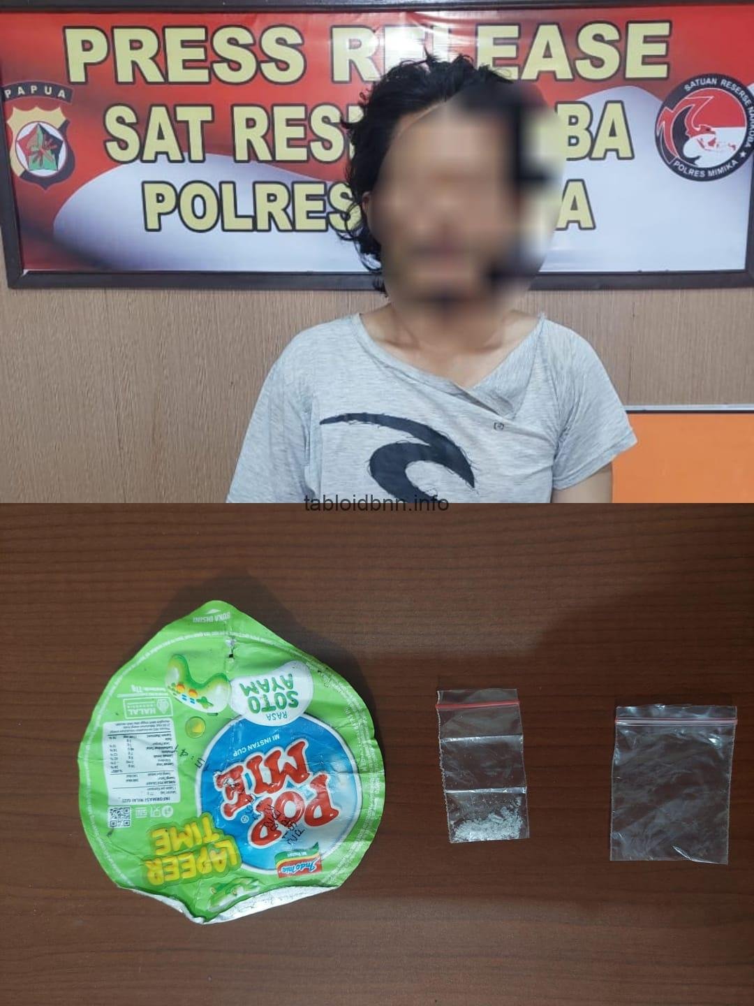 Kasat Resnarkoba Polres Mimika AKP Mattinetta, Kamis (30/10) mengatakan, pelaku bersama barang bukti berupa satu paket plastik klip bening kecil berisi sabu, satu unit handphone merek Infinix Note 40 warna biru, serta satu bekas plastik penutup Pop Mie warna hijau yang digunakan sebagai pembungkus sabu telah diamankan di Mapolres Mimika.