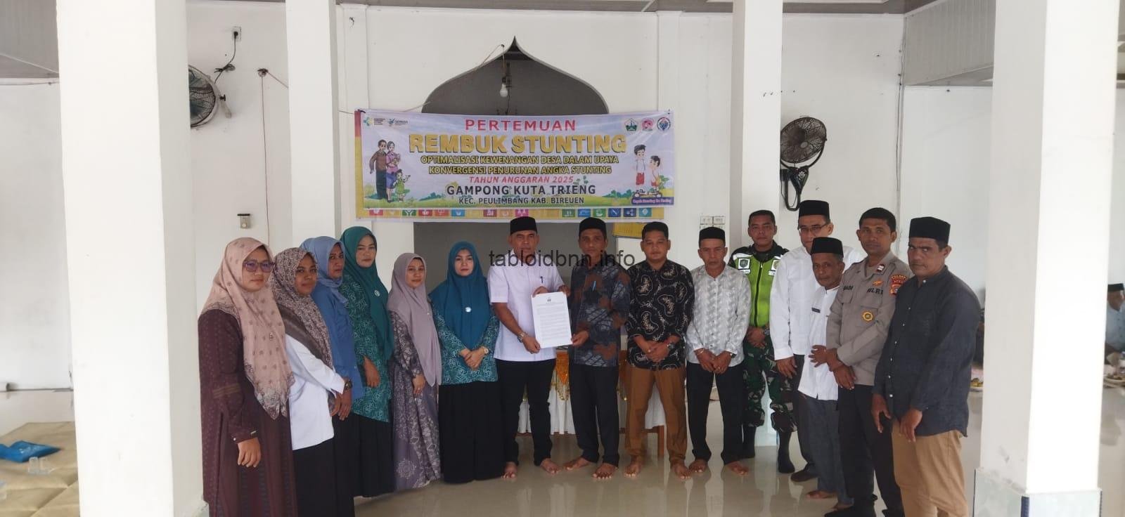 Tabloid bnn.info – Bireuen. Hari Jumat 14 November 2025 , Camat Peulimbang, Bahagia, S. Sos, menghadiri rapat Rembug stunting Desa/ gampong Kuta Trieng yang digelar pada hari Jumat 14 November 2025, bertempat di Meunasah Desa/ gampong Kuta Trieng. Rapat penting ini dipimpin langsung oleh, camat Bahagia S. Sos, dan dihadiri oleh berbagai elemen penting Desa bahkan dari kecamatan.