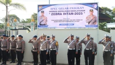 Tabloidbnn.info | Tabalong, Kalsel – dipimpin Kapolres Tabalong AKBP Wahyu Ismoyo J, S.I.K., M.H., M.Tr.Opsla., dan dihadiri Pejabat Utama Polres, Kapolsek jajaran, personel TNI, Dinas Perhubungan, Satpol PP, serta instansi terkait, Polres Tabalong melaksanakan Apel Gelar Pasukan Operasi Zebra Intan 2025 di halaman Mapolres Tabalong, pada Senin, (17/11/2025).