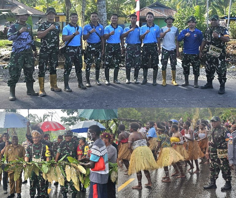 Bertepatan dengan kunjungan Waaster Kasad bidang Wanmil dan Kreamater, Brigjen TNI Heri Susanto, beserta rombongan mengecek langsung perkembangan pengerjaan TMMD ke-124 di kampung Pigapu, disambut hangat oleh masyarakat Pigapu dengan menghadirkan tarian seka kas Suku Kamoro.