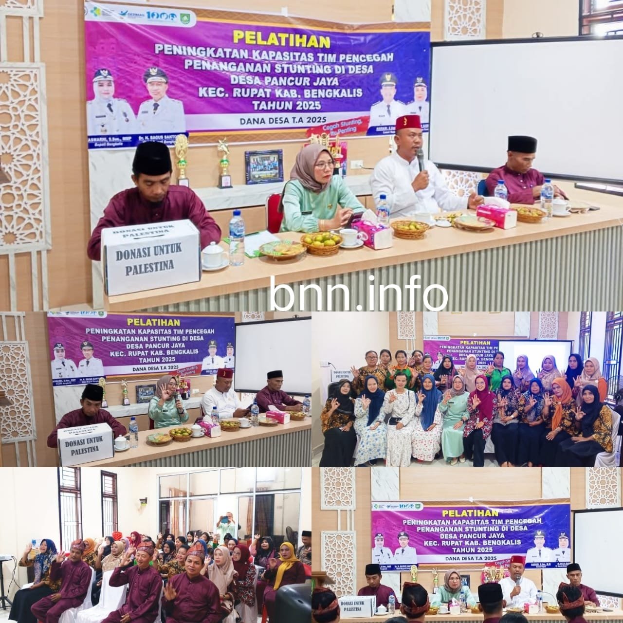 Tabloidbnn.info| Bengkalis- Bertempat di Aula Gedung Pertemuan, Pemerintah Desa Pancur Jaya, Kecamatan Rupat Kabupaten Bengkalis Riau, dilaksanakan Pelatihan Peningkatan Kapasitas Tim Pencegah Penanganan Stunting di Desa Pancur Jaya melalui Anggaran Dana Desa Tahun Anggaran 2025.