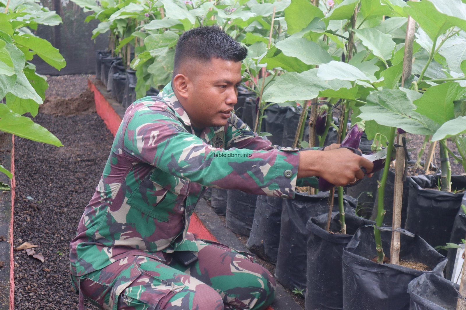 Pada kesempatan itu Letkol Inf Wahidin Sobar, S.Sos., M.Sc. menerangkan, dalam tanaman di kebun Modern dan Toga memiliki tanaman Terong,cabai,Tomat,dan kandang ayam bertelur dan tanaman obat- obat, kesempatan ini melaksanakan panen tanaman terong yang dipanen merupakan hasil kerja sama Prajurit dan Persit yaitu melalui Program Lahan Inovatif.