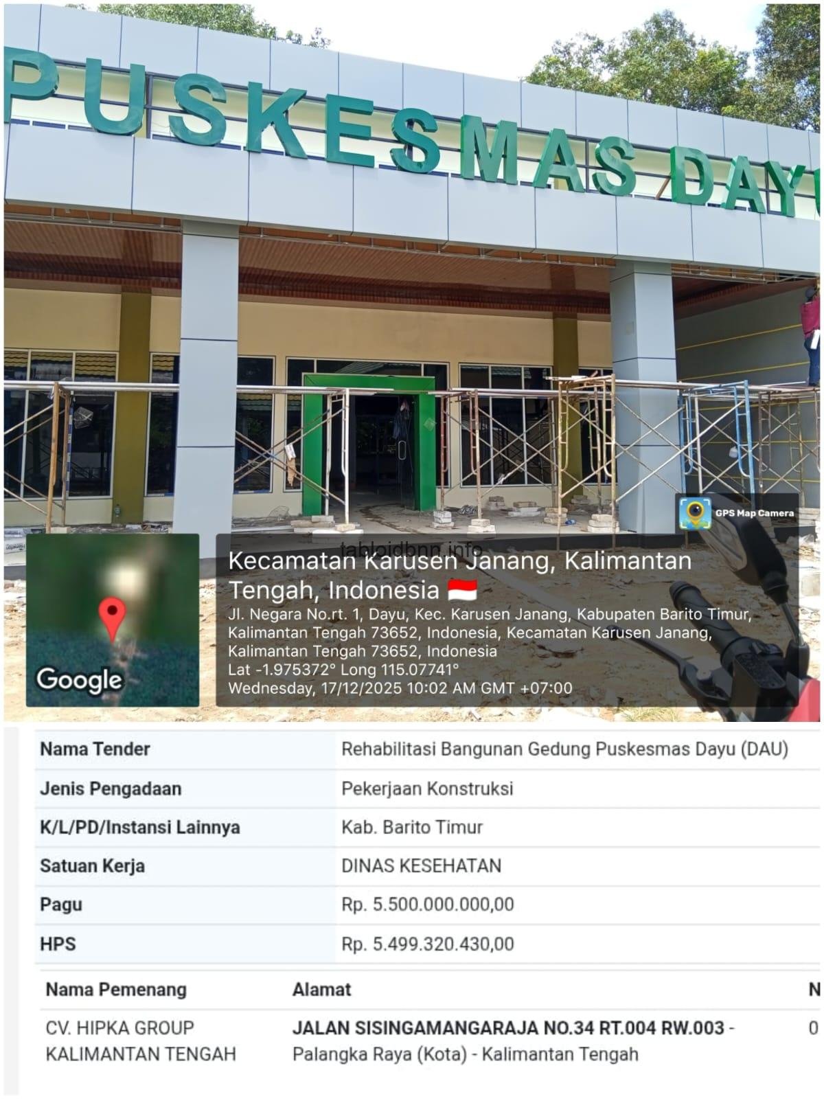 tabloidbnn.info | Bartim – Pembangunan Puskesmas Dayu di Kecamatan Karusen Janang, Kabupaten Barito Timur, kini tengah dikebut oleh pihak kontraktor. Meski batas waktu semakin mepet, para pekerja masih tampak aktif menyelesaikan fisik bangunan pada Rabu (17/12/2025).