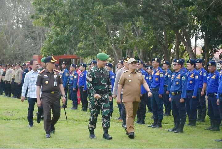 Sebelum pelaksanaan Apel tadi, Bupati bersama Forkopimda memeriksa kelengkapan dan kesiapan pasukan Apel Siaga.