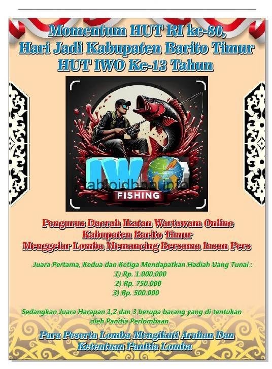 Pengurus Daerah (PD) IWO Bartim akan menggelar akan lomba mancing bersama insan pers, pada Sabtu (23/8/2025) mendatang.