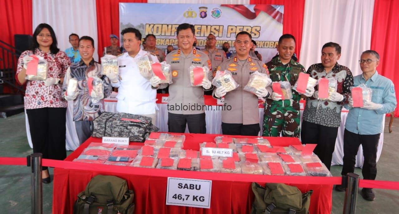 Barang bukti berhasil diamankan, Sabu 46,7 Kg, Uang Tunai senilai Rp. 13.480.000 (Tiga Belas Juta Empat Ratus Delapan Puluh Ribu), 1 (satu) Unit kendaraan R4 Merk DAIHATSU, dan 1 (satu) Unit kendaraan R4, AVANZA, ungkap Kapolda.