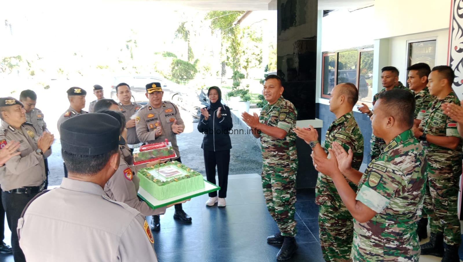 Tabloidbnn.info. Simalungun- Wujud sinergitas antara TNI-POLRI Personel Polres Simalungun mengunjungi Mako Yonif 122/TS dengan memberikan suprise berupa Kado ulang tahun dalam rangka memperingati Hari Ulang tahun TNI ke-80 dengan tema “TNI Prima, TNI Rakyat, Indonesia maju”, Minggu (05/10/2025).