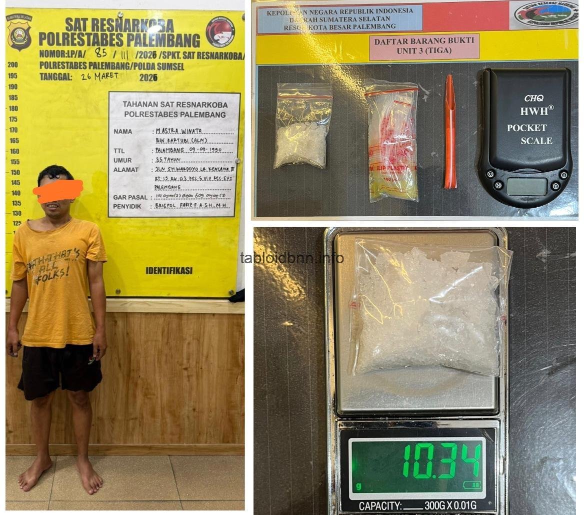 Unit 3 Satuan Reserse Narkoba Polrestabes Palembang berhasil mengungkap kasus peredaran narkotika jenis sabu di kawasan Lorong Kedukan, Kelurahan 5 Ulu, Kecamatan Seberang Ulu I, Kota Palembang. Dalam operasi yang digelar pada Kamis (26/3/2026) sekitar pukul 15.30 WIB, petugas membekuk tersangka berinisial MAW (35) di dalam rumahnya.