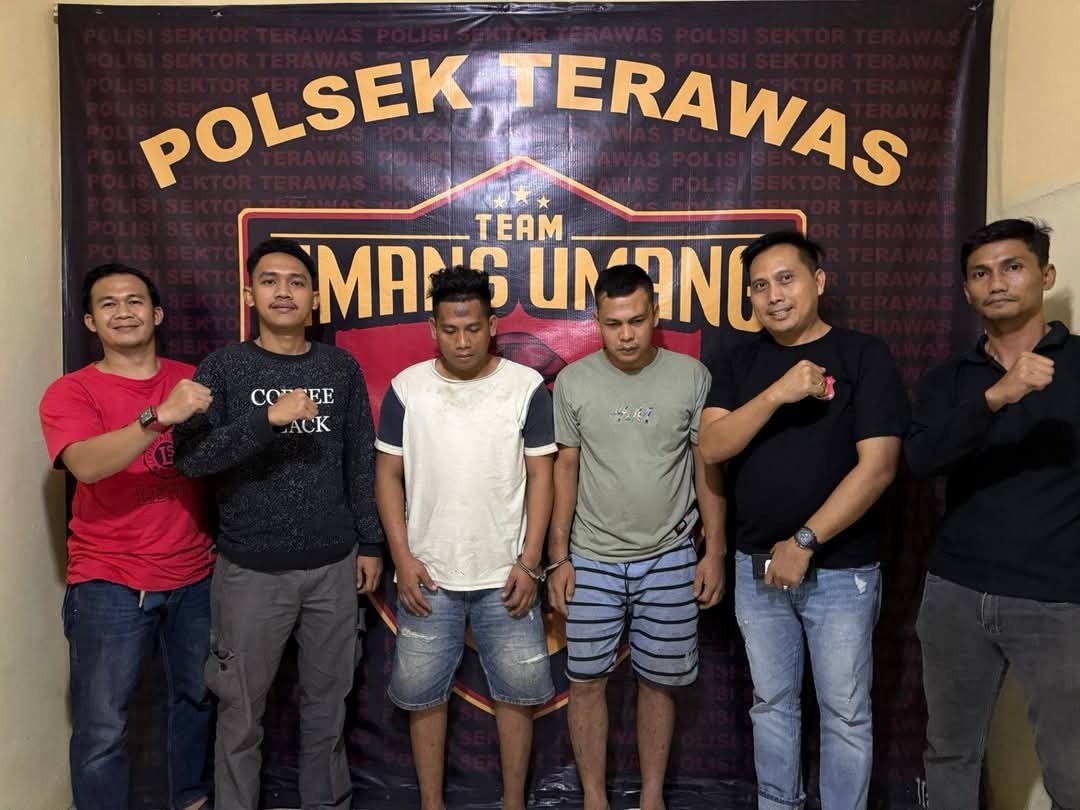 Setelah melakukan serangkaian penyelidikan intensif, pada Minggu malam, 11 Mei 2025 sekitar pukul 19.00 WIB, tim Reskrim Polsek STL Ulu Terawas yang dipimpin langsung oleh Kapolsek AKP Dedy Purnomo berhasil menangkap dua pelaku, yakni Reza Pahlevi (30) dan Tatang Irawan (32), di Dusun IV Desa Babat. Penangkapan dilakukan setelah pelaku dipancing oleh saksi Aripudin untuk menjual kambing hasil curian.