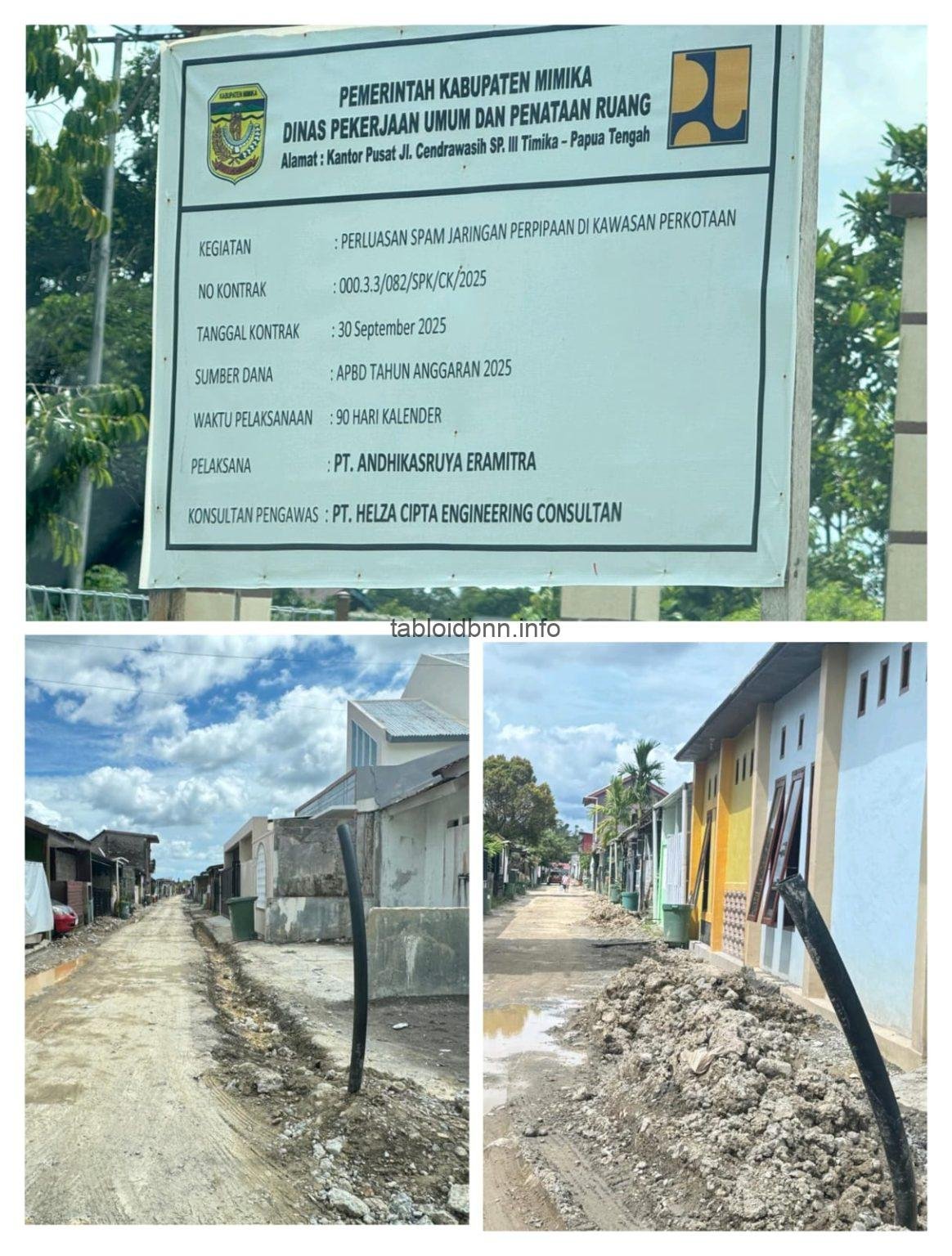 Berdasarkan papan informasi proyek, kegiatan tersebut merupakan Perluasan SPAM Jaringan Perpipaan di Kawasan Perkotaan yang dilaksanakan oleh Dinas Pekerjaan Umum dan Penataan Ruang (PUPR) Kabupaten Mimika.