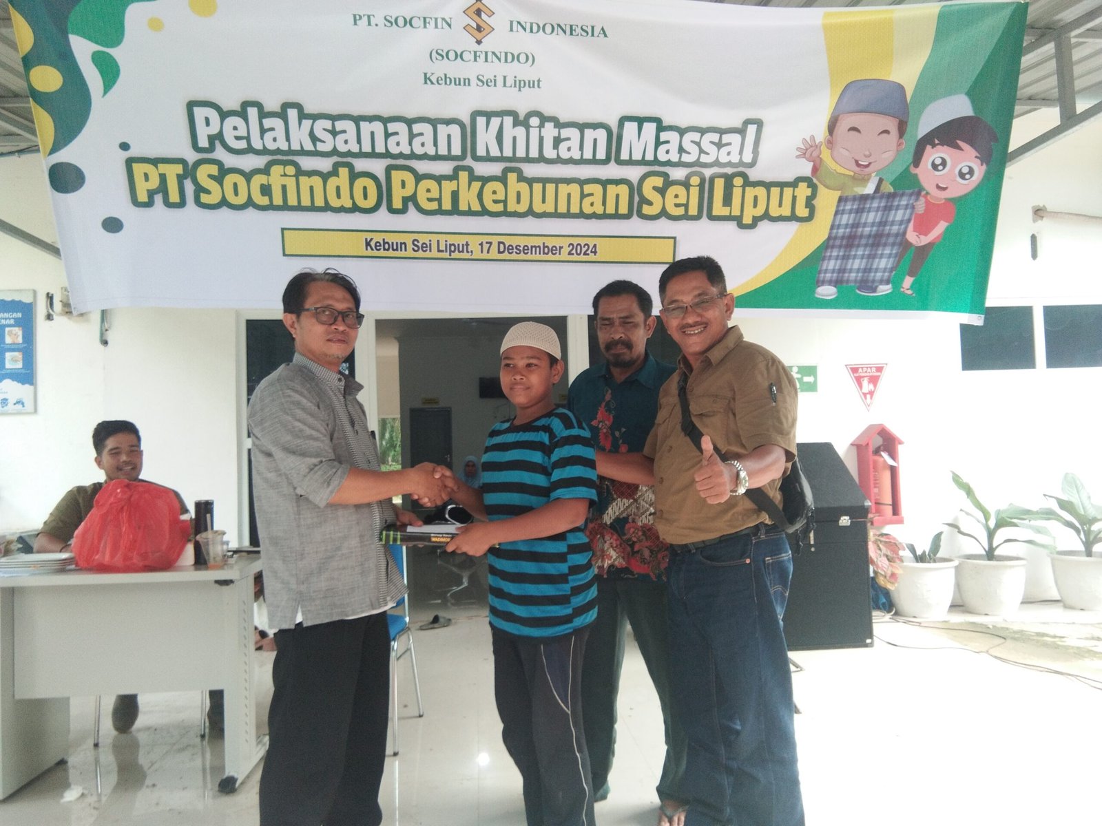 Kegiatan khitanan massal tersebut berlangsung di Klinik PT. Socfindo Kebun Sei Liput Desa Purwodadi Kecamatan Kejuruan Muda, Kabupaten setempat, Selasa, (17/12/2024).