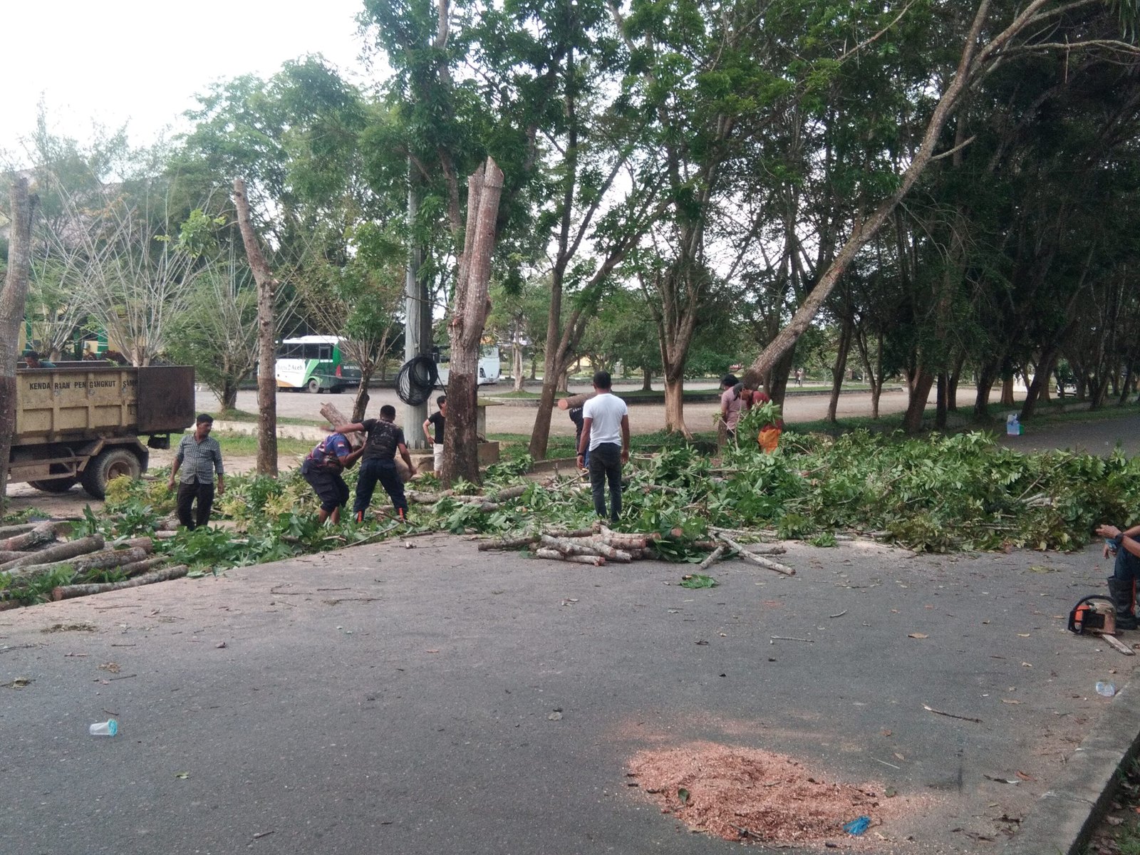 Untuk proses pemangkasan, sedikitnya ada 30 orang petugas dari DLH yang dikerahkan dalam penanganan hingga pembersihan tersebut. ungkap Kadis Lingkungan Hidup Kabupaten Aceh Tamiang.