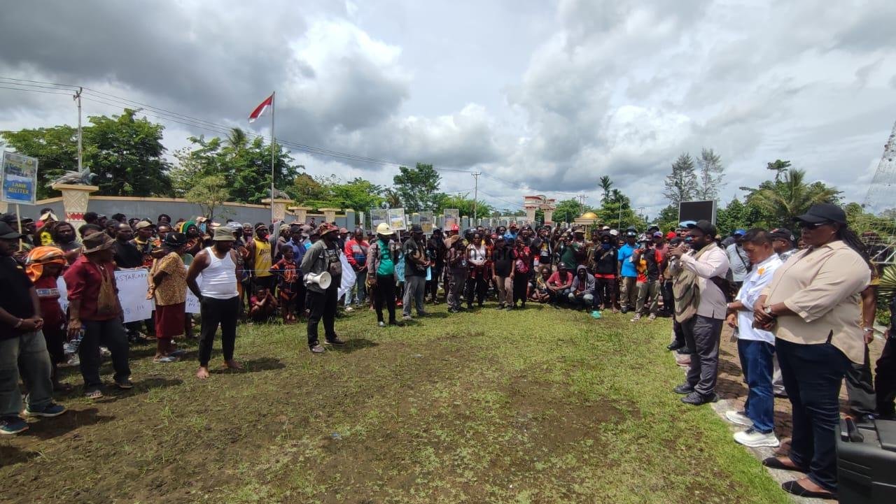 Massa aksi berjumlah ratusan orang itu ditemui langsung anggota DPRK Mimika Dolfin Beanal, Luther Beanal, Mariunus Yandiseno, dan Frederina Matirani yang menerima pernyataan sikap dari koordinator aksi.