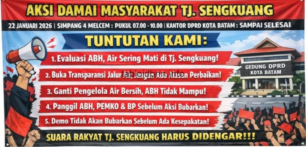Kekecewaan warga itu diwujudkan melalui rencana aksi damai masyarakat Tanjung Sengkuang yang dijadwalkan berlangsung pada 22 Januari 2026, mulai pukul 07.00 hingga 10.00 WIB, dengan titik kumpul di Simpang 4 Melcem dan dilanjutkan ke Kantor DPRD Kota Batam.