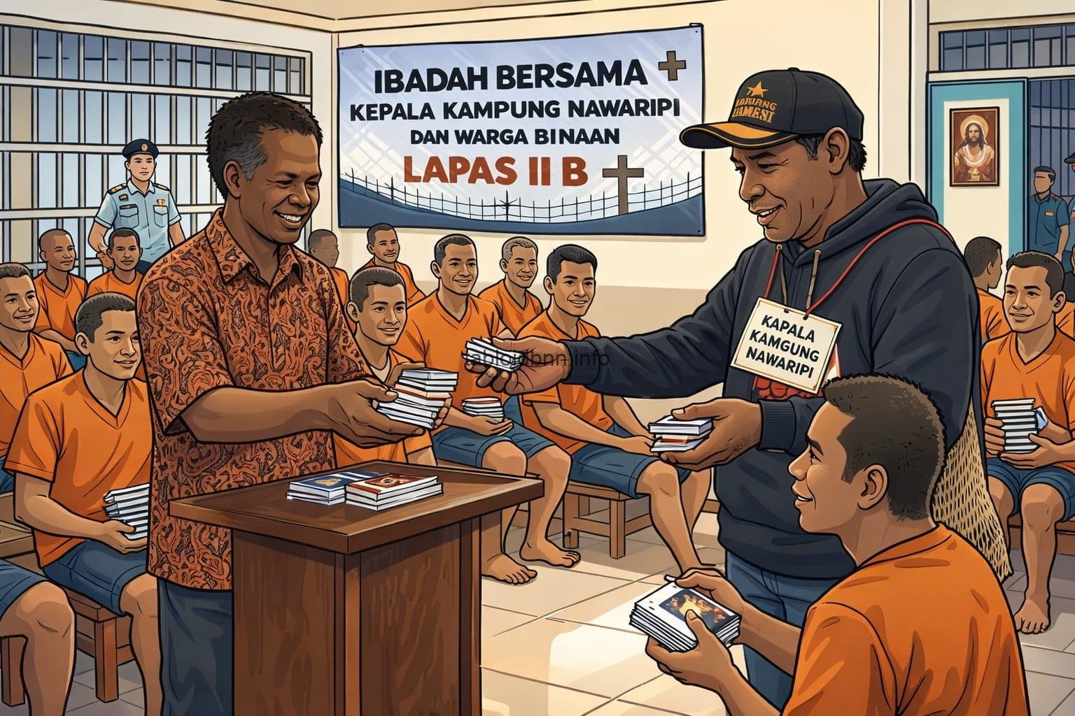 Tabloidbnn.info.Timika, — Menjelang perayaan Paskah, sebuah pesan kuat tentang kasih, pengampunan, dan harapan menggema dari dalam Lembaga Pemasyarakatan (Lapas) Kelas II B SP 5, Kabupaten Mimika. Kepala Kampung Nawaripi sekaligus Ketua APDESI, Norman Ditubun, bersama pelayanan CMN (Jaringan Pria Kristen Timika), hadir membawa lebih dari sekadar bantuan—mereka membawa terang bagi jiwa-jiwa yang sedang mencari arah baru.