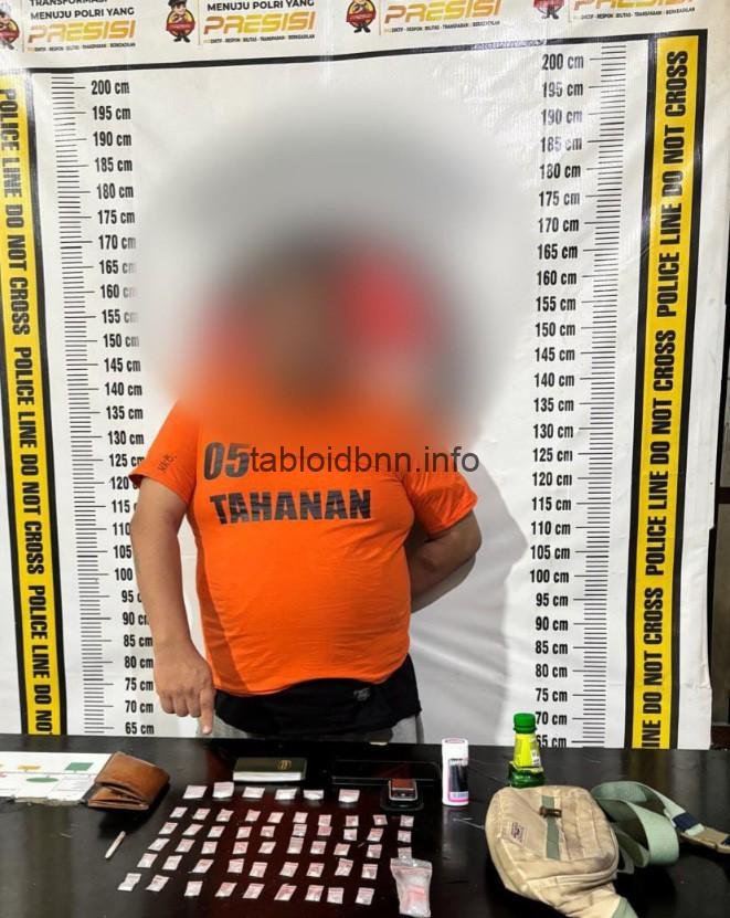 Dari dalam tas sandang berwarna krem yang dibawa pelaku, petugas menemukan 54 plastik klip berisi sabu — terdiri dari 48 plastik klip kecil dan 6 plastik klip sedang, dengan total berat brutto mencapai 10,77 gram. Tidak hanya itu, petugas juga mengamankan timbangan elektrik, kaca pirex, alat hisap sabu dari botol plastik, buku catatan, hingga satu unit HP merek Realme berwarna biru yang diduga digunakan untuk komunikasi transaksi narkoba.