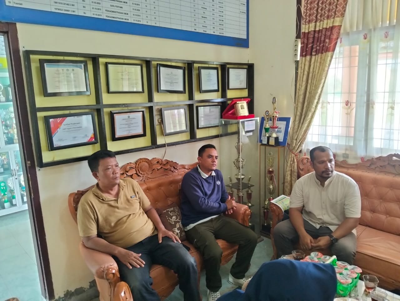 Kedatangan Ketua Forum Pengurangan Resiko Bencana (FPRB) Kabupaten Aceh Tamiang bersama rombongan disambut langsung oleh Kepala Sekolah Menengah Pertama (SMP) 4 Percontohan Karang Baru, Rudi Prawira, S.Pd di ruang kerjanya, Sabtu, (19/4/2025) pagi.