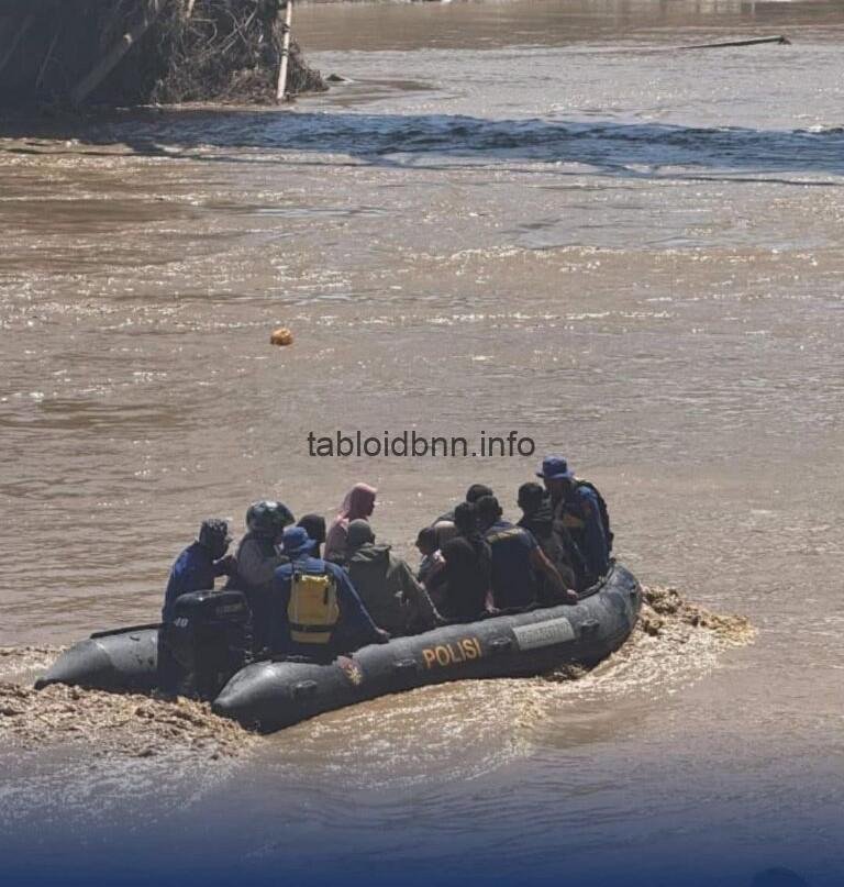 “Sebanyak 30 personel SAR dikerahkan dengan 2 (dua) unit truk operasional dan 3 (tiga) unit rubber boat untuk mengevakuasi serta menyeberangkan warga secara bergantian. Jembatan tersebut merupakan akses vital sehingga penanganan difokuskan pada titik itu,” ujar Kombes Pol. Joko Krisdiyanto.