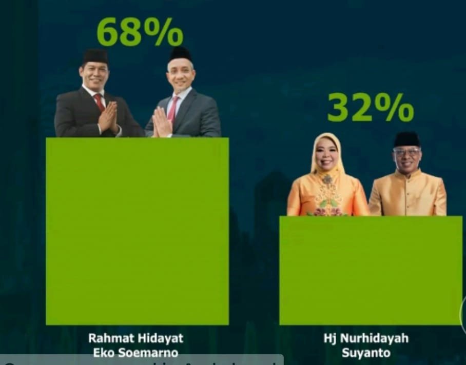 Tabloidbnn.info. Pangkalan Bun, Cabup-cawabup Kobar 2024 no urut 01 Rahmat Hidayat – Eko Sumarno, unggul sementara dalam voting partisipan, dan meraih 1.009 suara atau 68 persen, dari rivalnya Paslon no urut 02 Hj. Nurhidayah – Suyanto yang meraih angka partisipan 523 suara atau 32 persen.