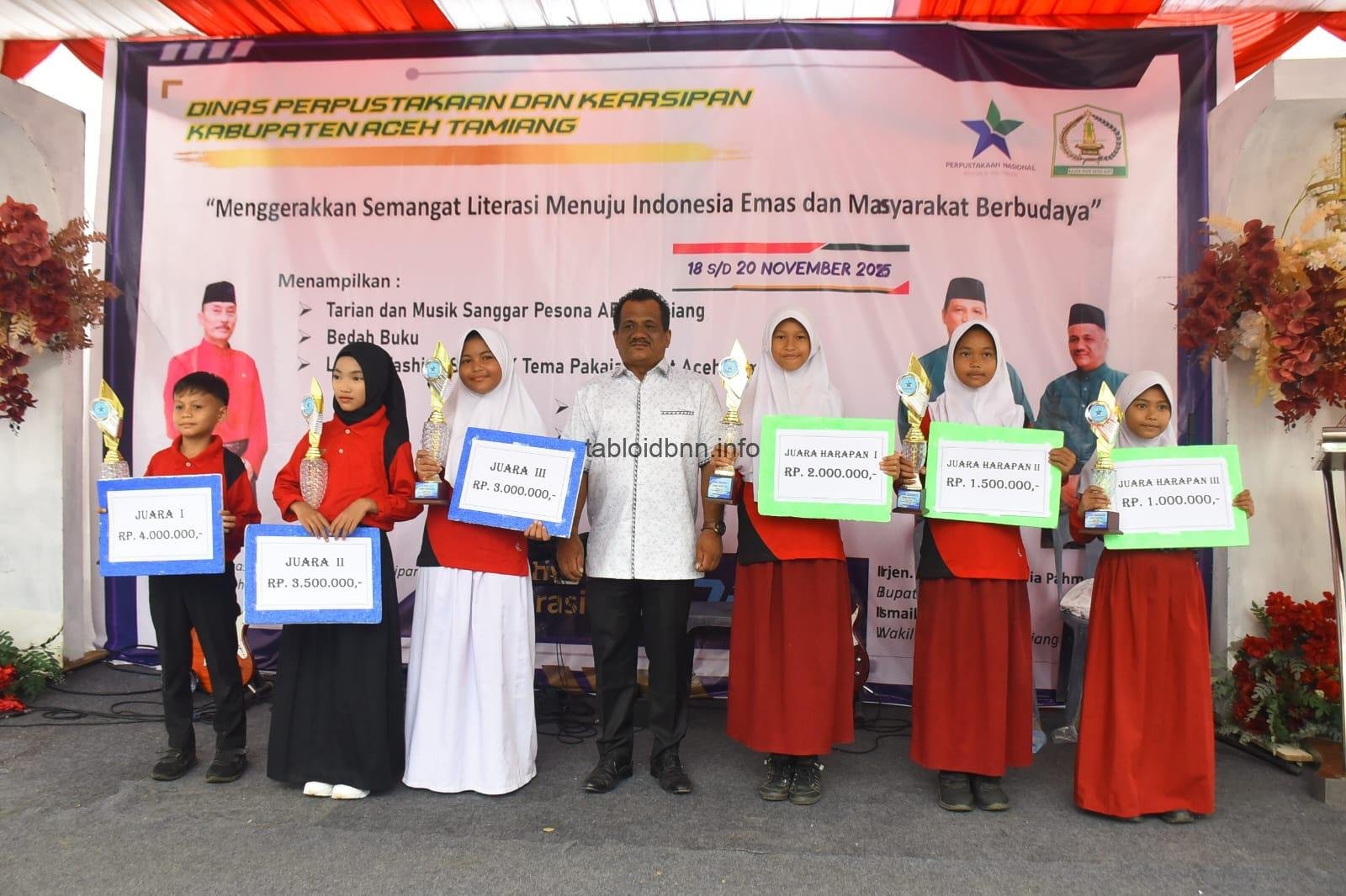 Tabloidbnn.info | Aceh Tamiang – Prokopim: Wakil Bupati Kabupaten Aceh Tamiang, Ismail, S.E.I, secara resmi menutup Festival Literasi Daerah Tahun 2025. Acara penutupan yang berlangsung meriah di halaman Dinas Perpustakaan dan Kearsipan pada Kamis (20/11/2025) ini sukses diselenggarakan selama tiga hari.